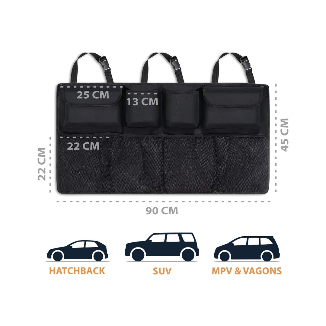PRACTICAL DESIGN: The trunk bag has a hanging design, saves more space in the trunk and leaves enough space for the usual items, such as shopping, strollers, etc.